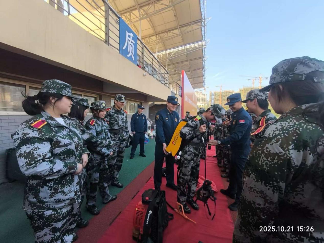 为切实增强师生消防安全意识,提升应对火灾突发事件的应急处置能力,筑牢校园消防安全“防火墙”,10月21日,我校保卫处、学工处联合徐州市泉山区防救援大队在校体育场成功举办全体新生消防知识培训及灭火实战演练活动。各学院师生、消防救援大队、校消防工作人员及安保人员共3000余人参与此次活动。